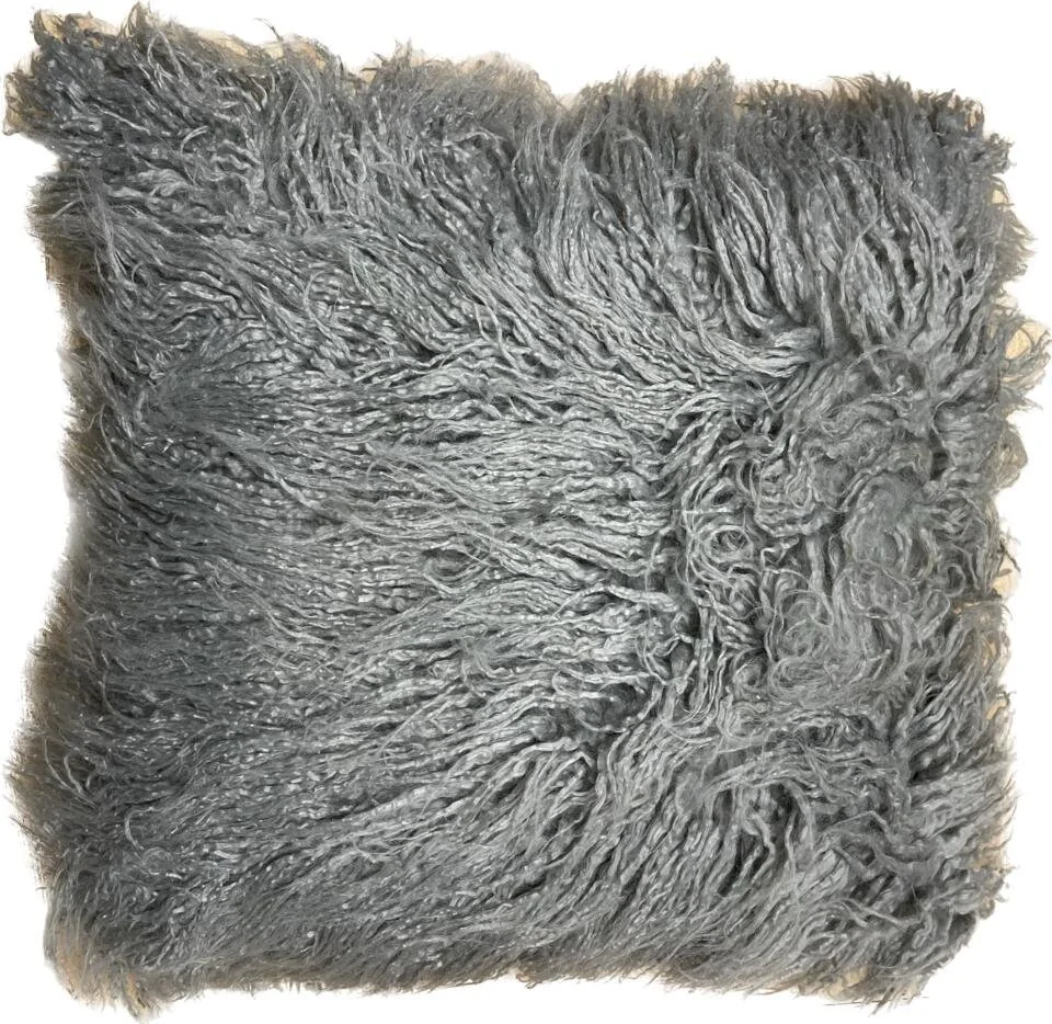 Grey Faux Fur Square Throw Pillow
